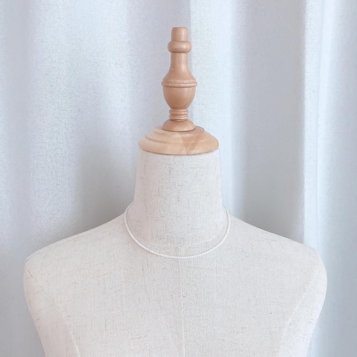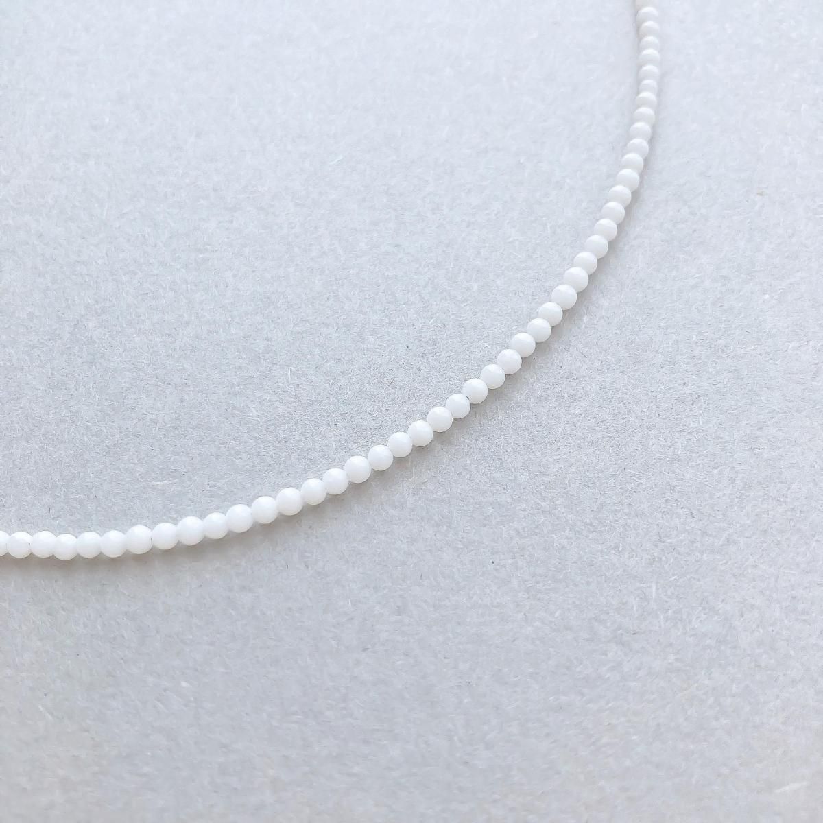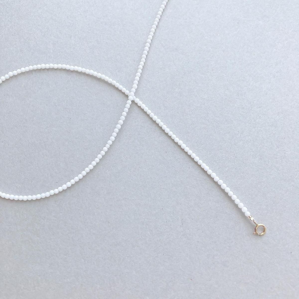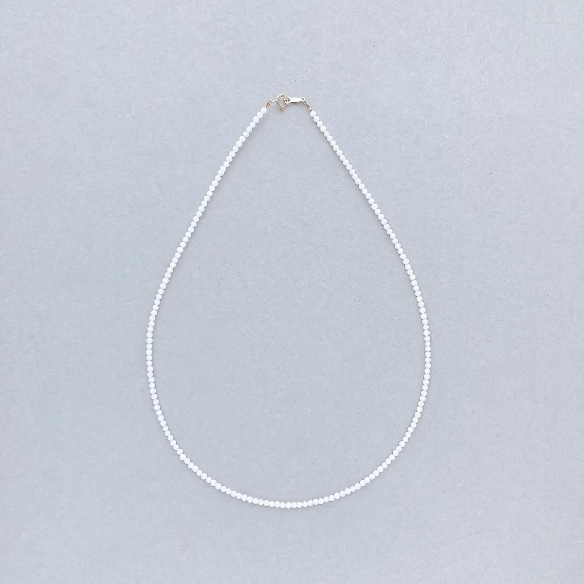 極小のラウンド型の天然石を、程良い張り感が特徴的なナイロンコーティングのステンレスワイヤーに通したシンプルなネックレスです。