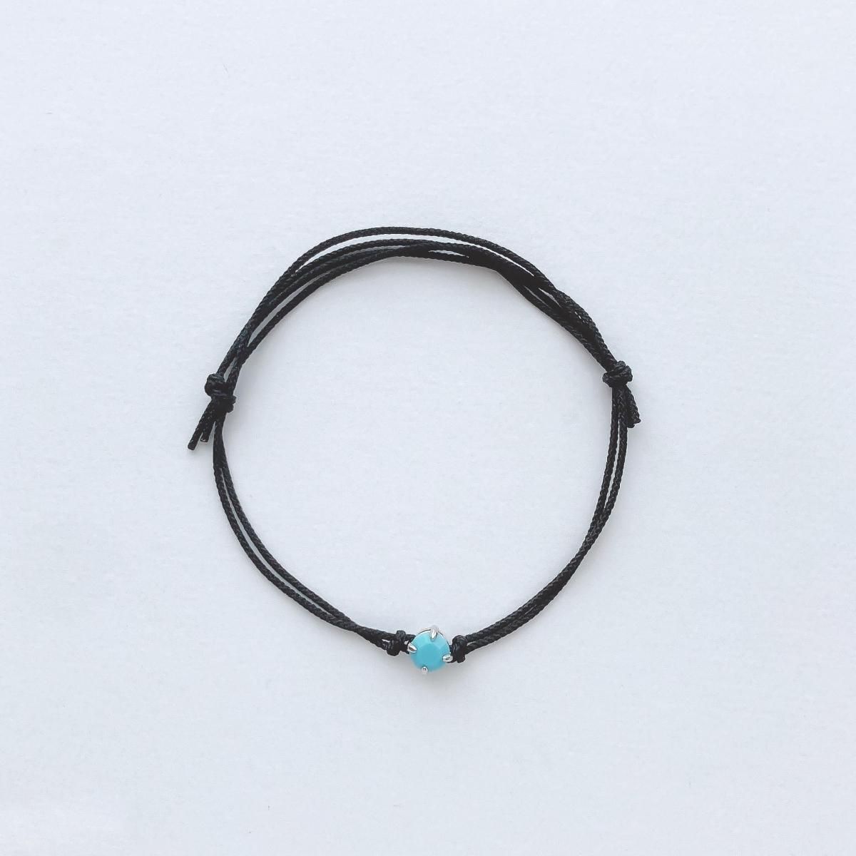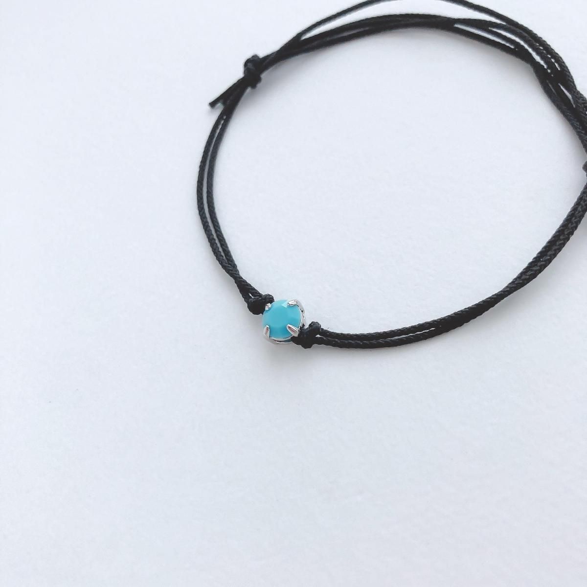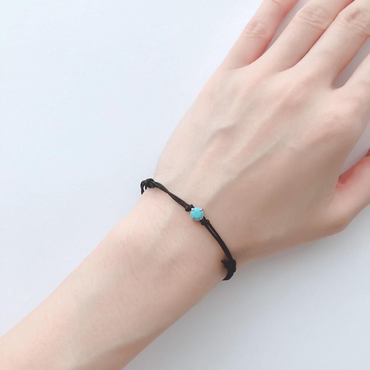 ターコイズブルーカラーのガラスとブラックカラーのコードの組み合わせ。