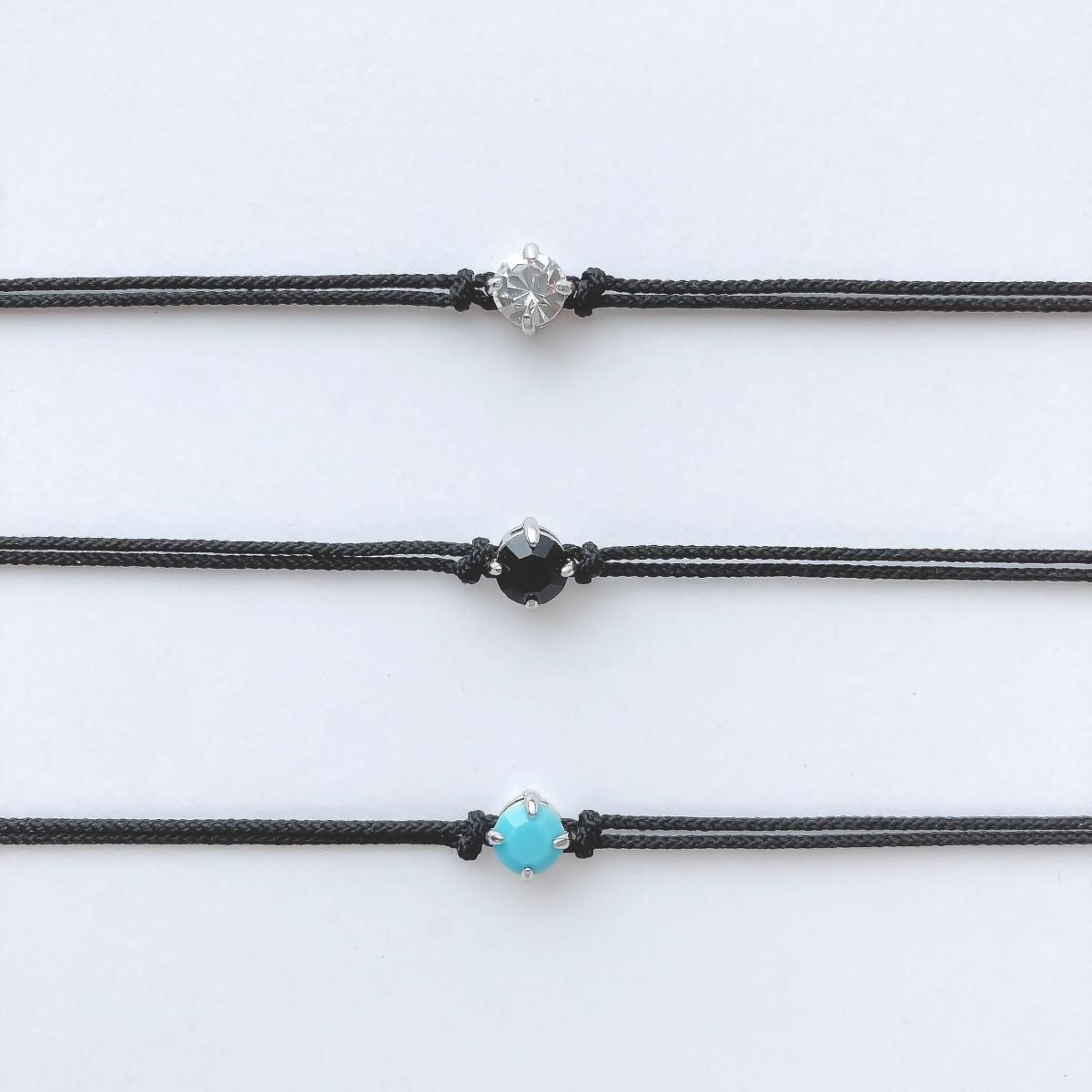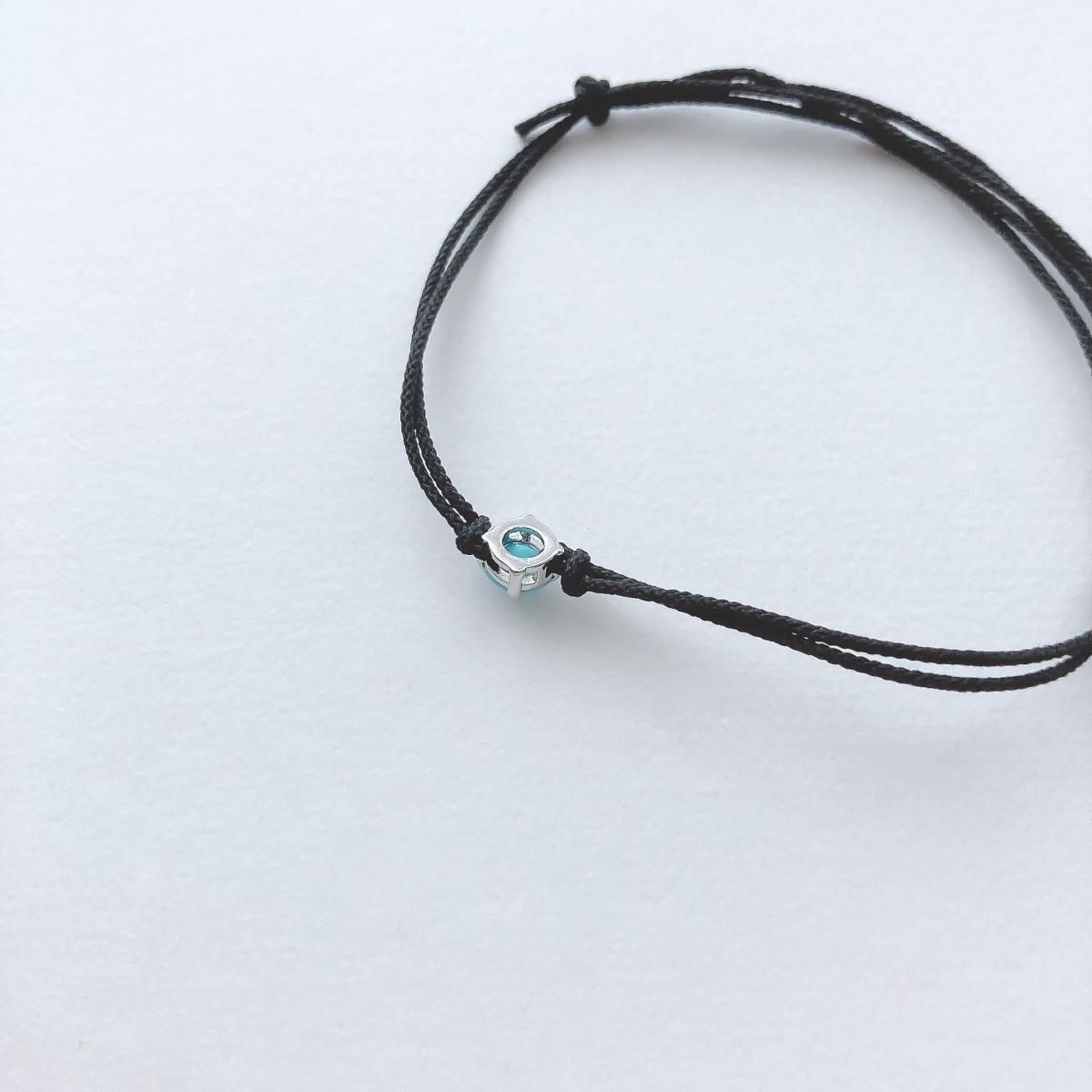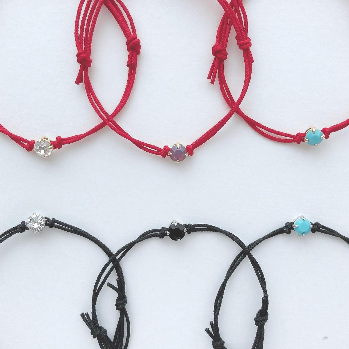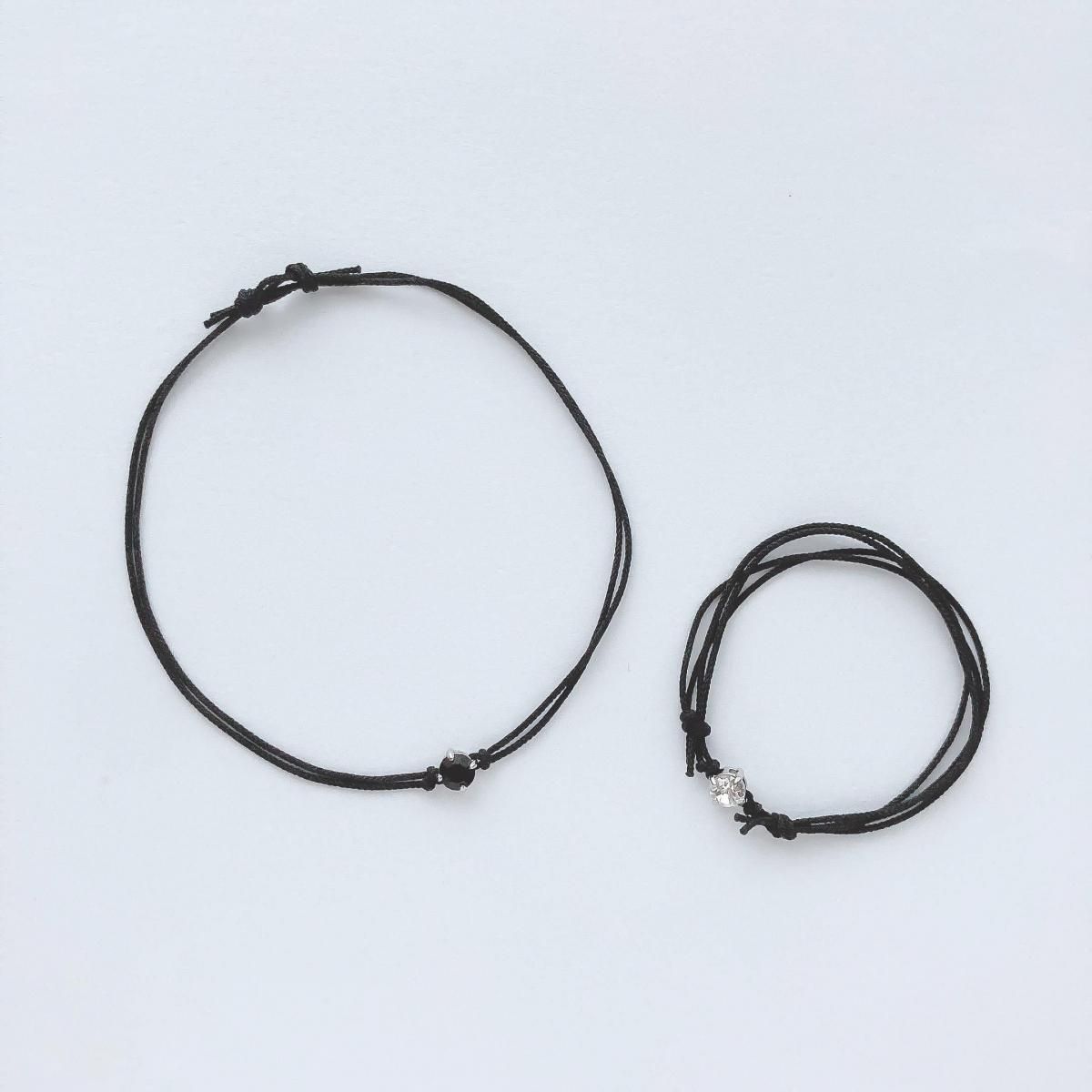 コードの結び目を左右にスライドさせる事で、長さの調整と脱着が可能なミサンガ方式ですので、着用いただく方のサイズに合わせてご使用いただけます。