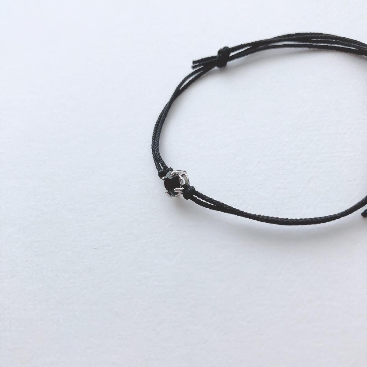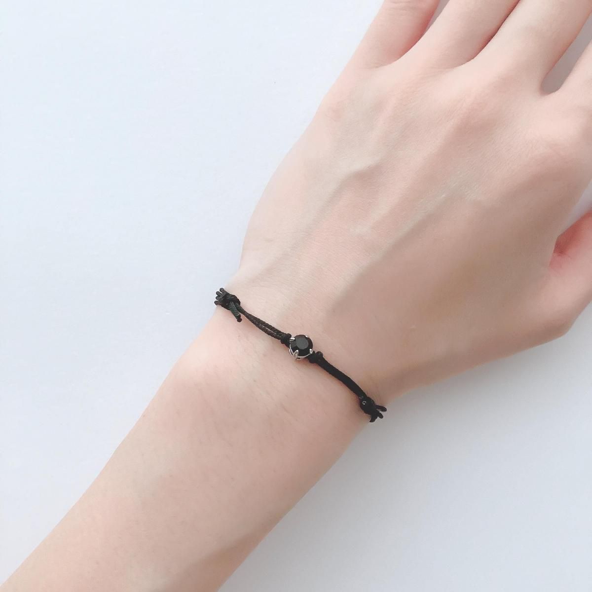 コードの結び目を左右にスライドさせる事で、長さの調整と脱着が可能なミサンガ方式ですので、着用いただく方のサイズに合わせてご使用いただけます。