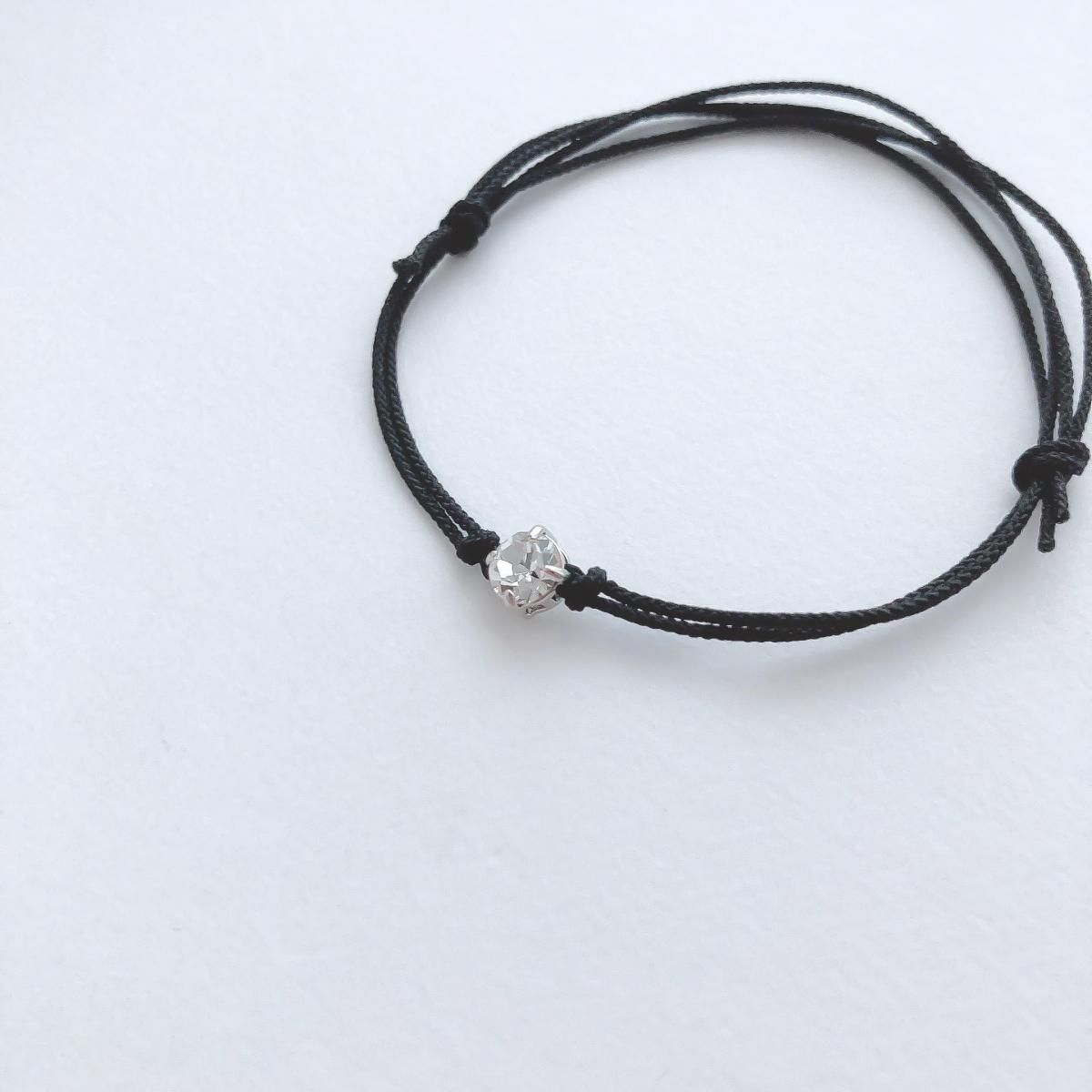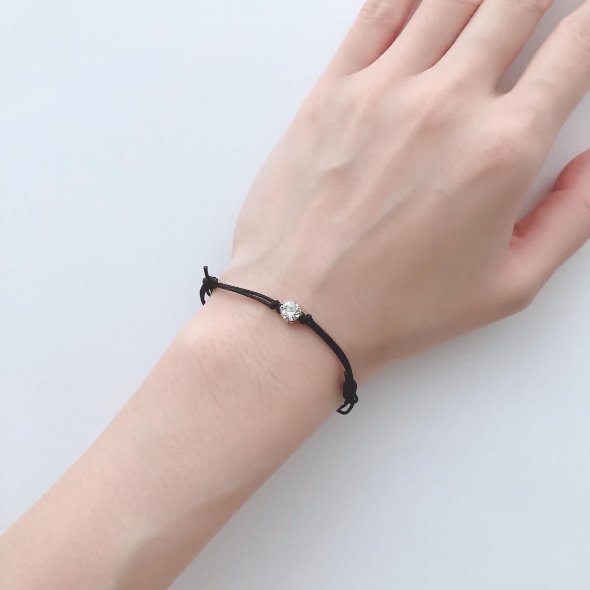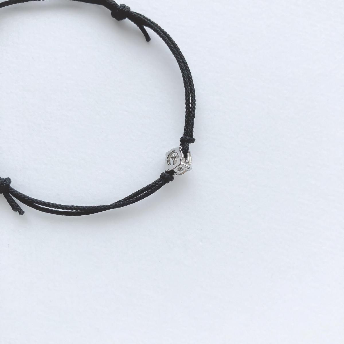コードの結び目を左右にスライドさせる事で、長さの調整と脱着が可能なミサンガ方式ですので、着用いただく方のサイズに合わせてご使用いただけます。
